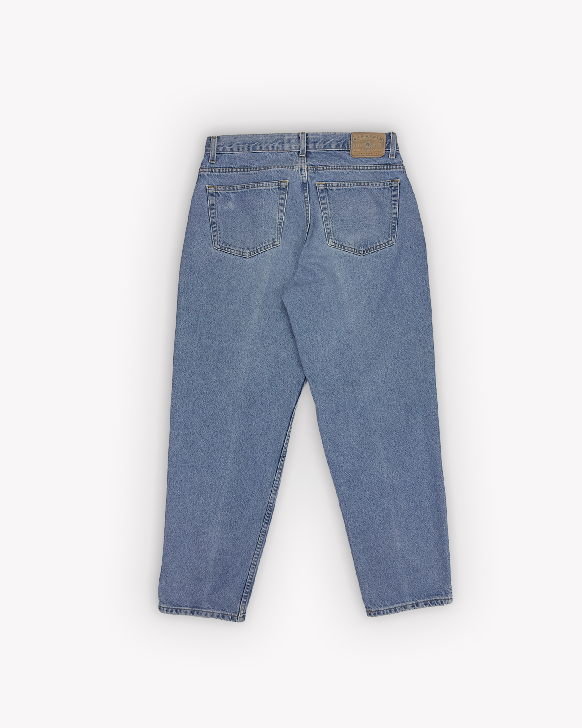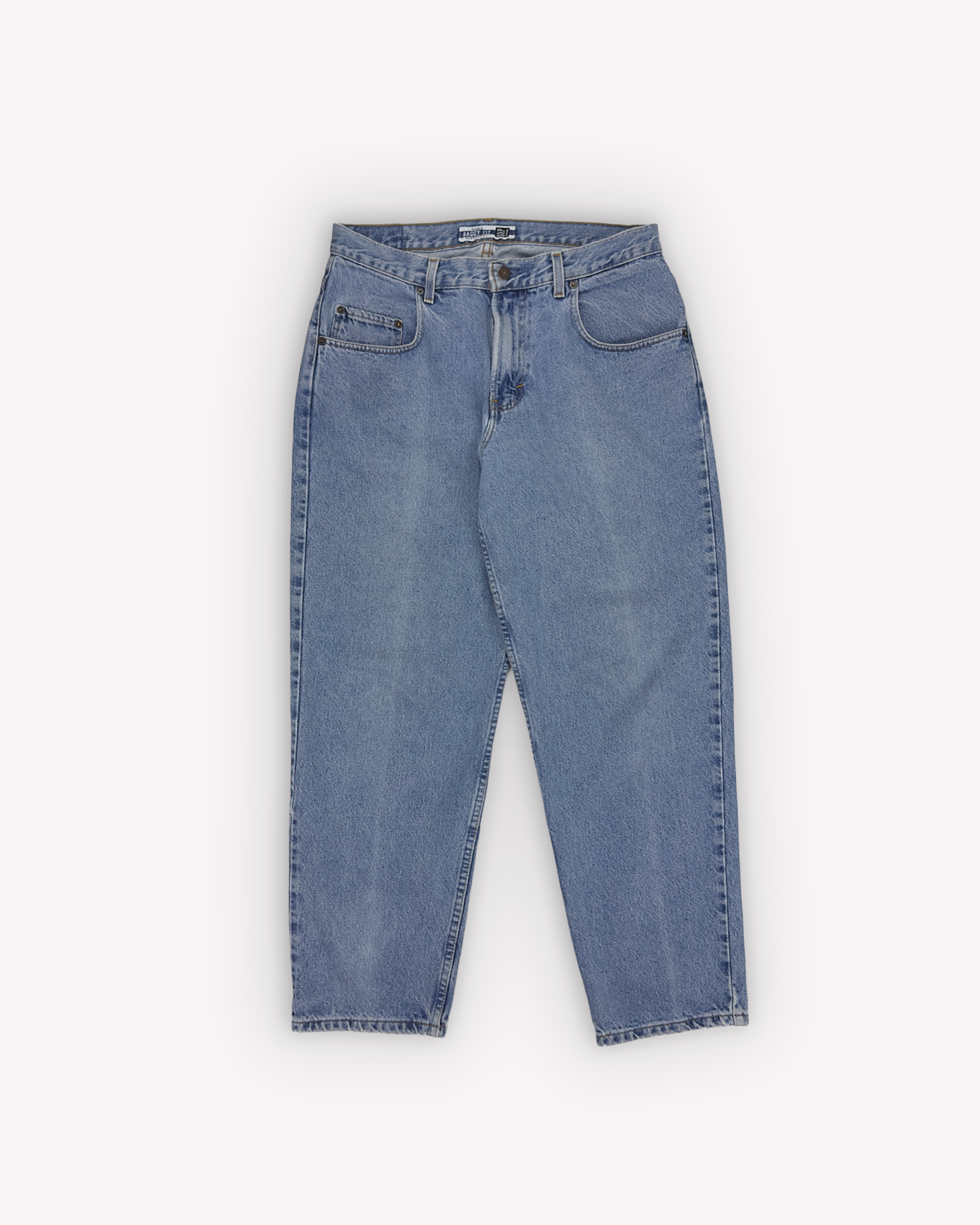Super solid jeans, made from that familiar, hefty 90s USA denim we all know and love. Labelled as Gap's Baggy Fit, they're a nice regular fitting jean, tapering a touch down towards the ankle - very similar to a 550 Orange Tab fit.