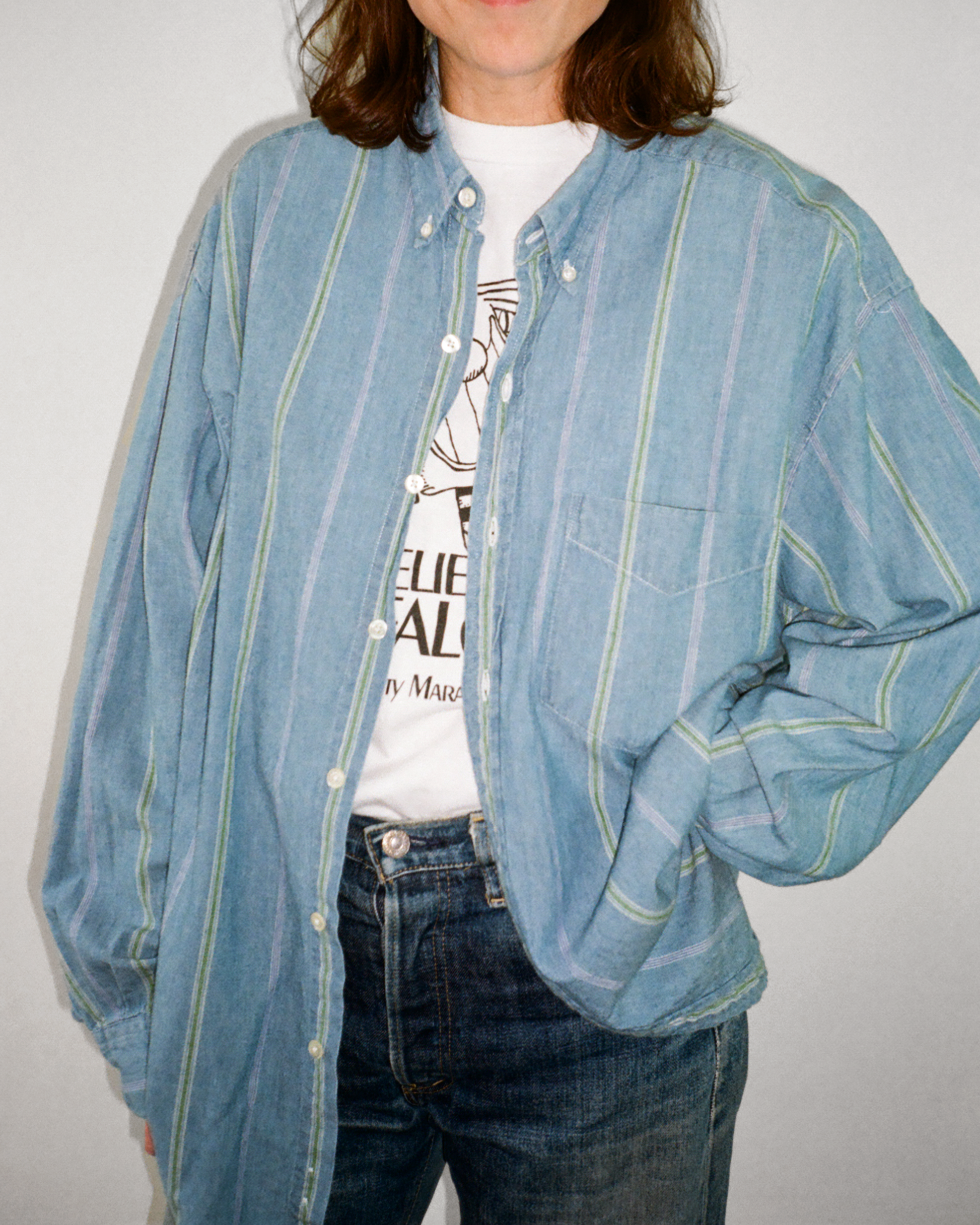 A perfect 90s chambray from Gap, plus a little extra spice with the stripe - a nice mix of preppy and workwear not often seen. Classic fat Gap label.