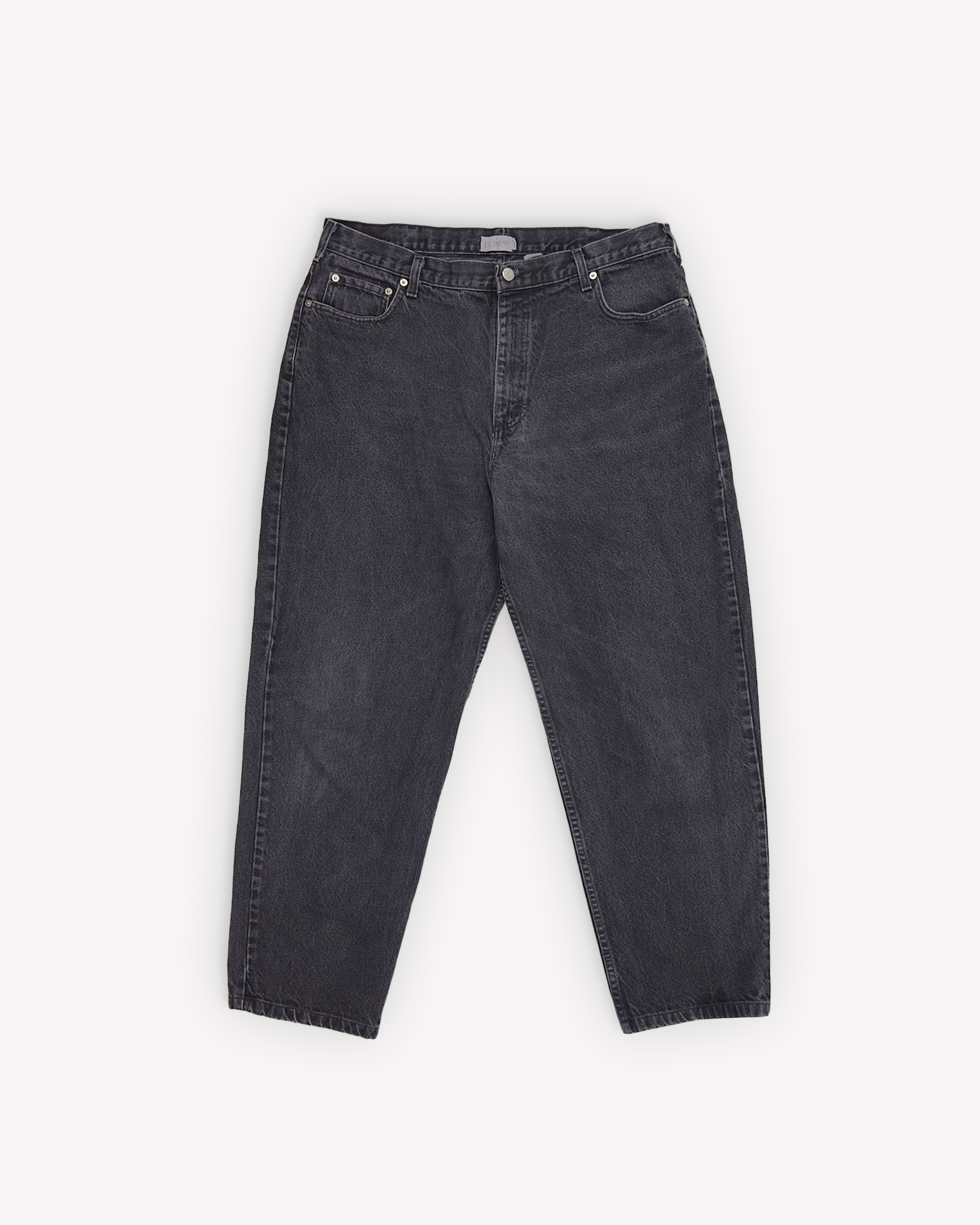The wash on these black 90s J.Crew jeans is honestly perfect - just the right amount of fade. Features the always popular Oarsman label on the waist. Hefty textured denim, the ideal weight.