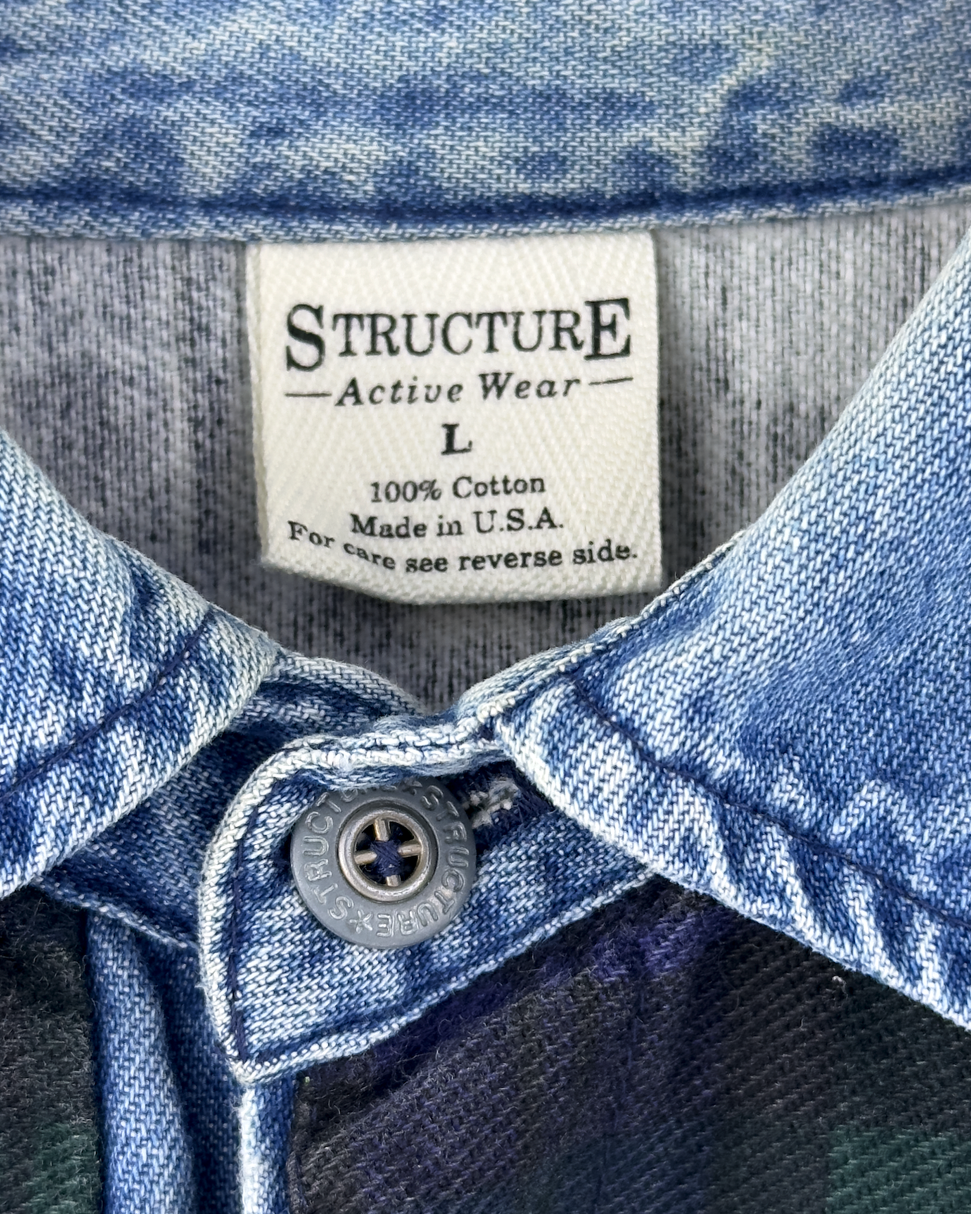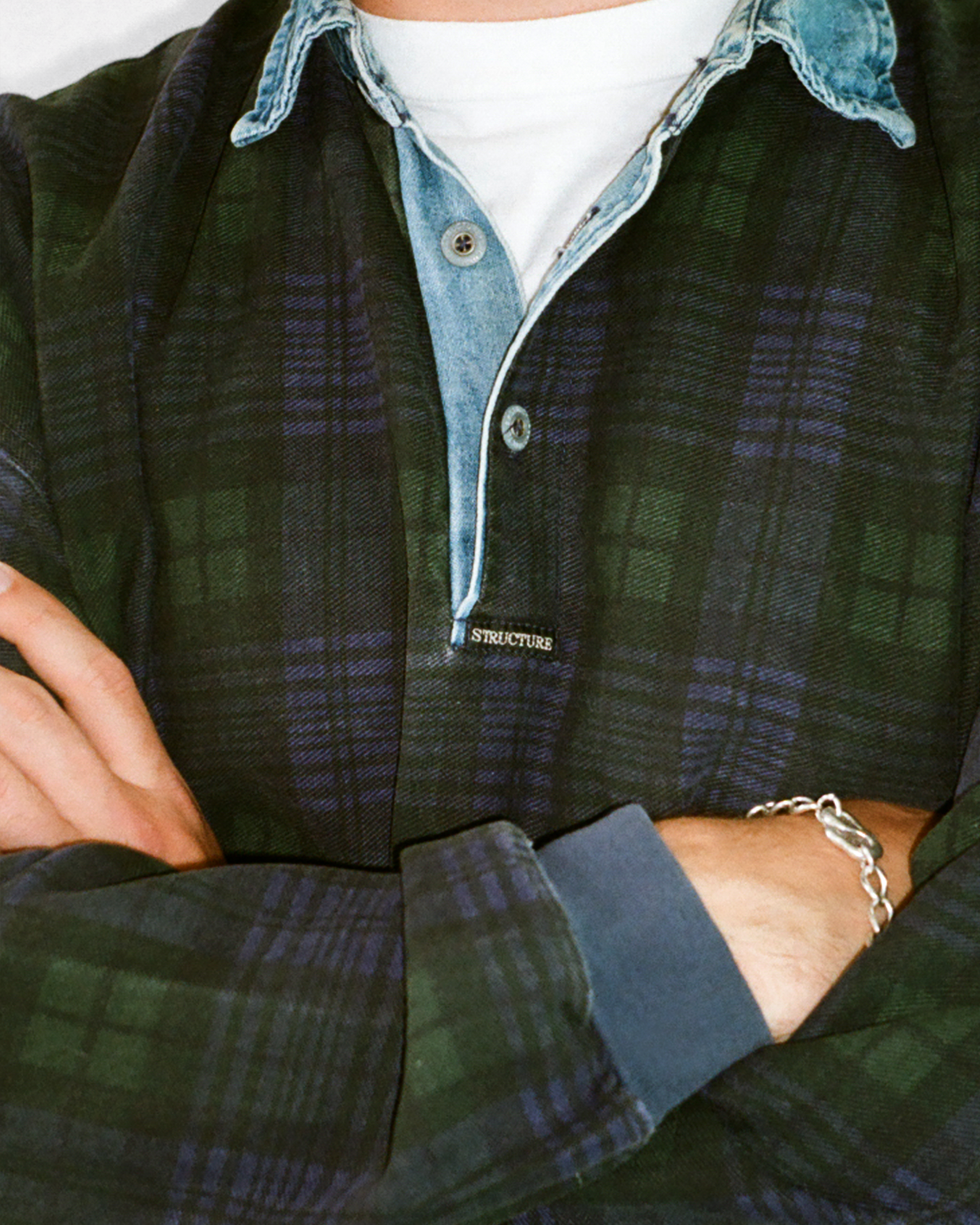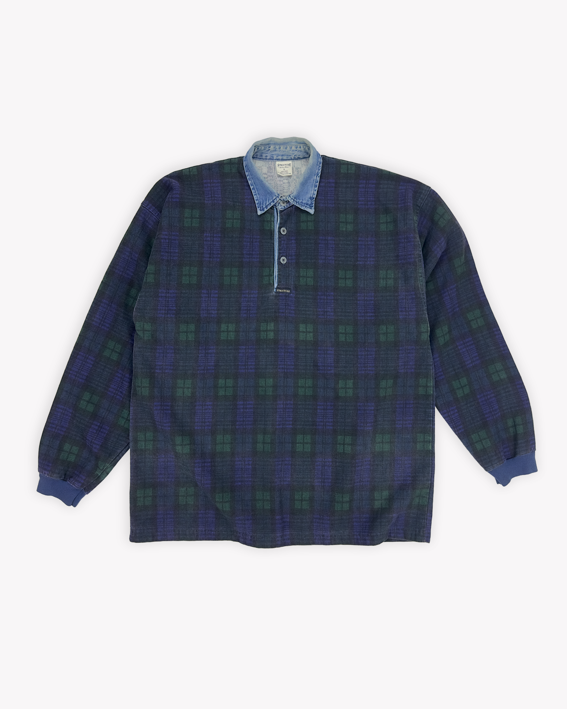 Structure make some of our favourite 90s rugbys around. This killer blackwatch number is as good as it gets - with perfect wear on the denim collar.