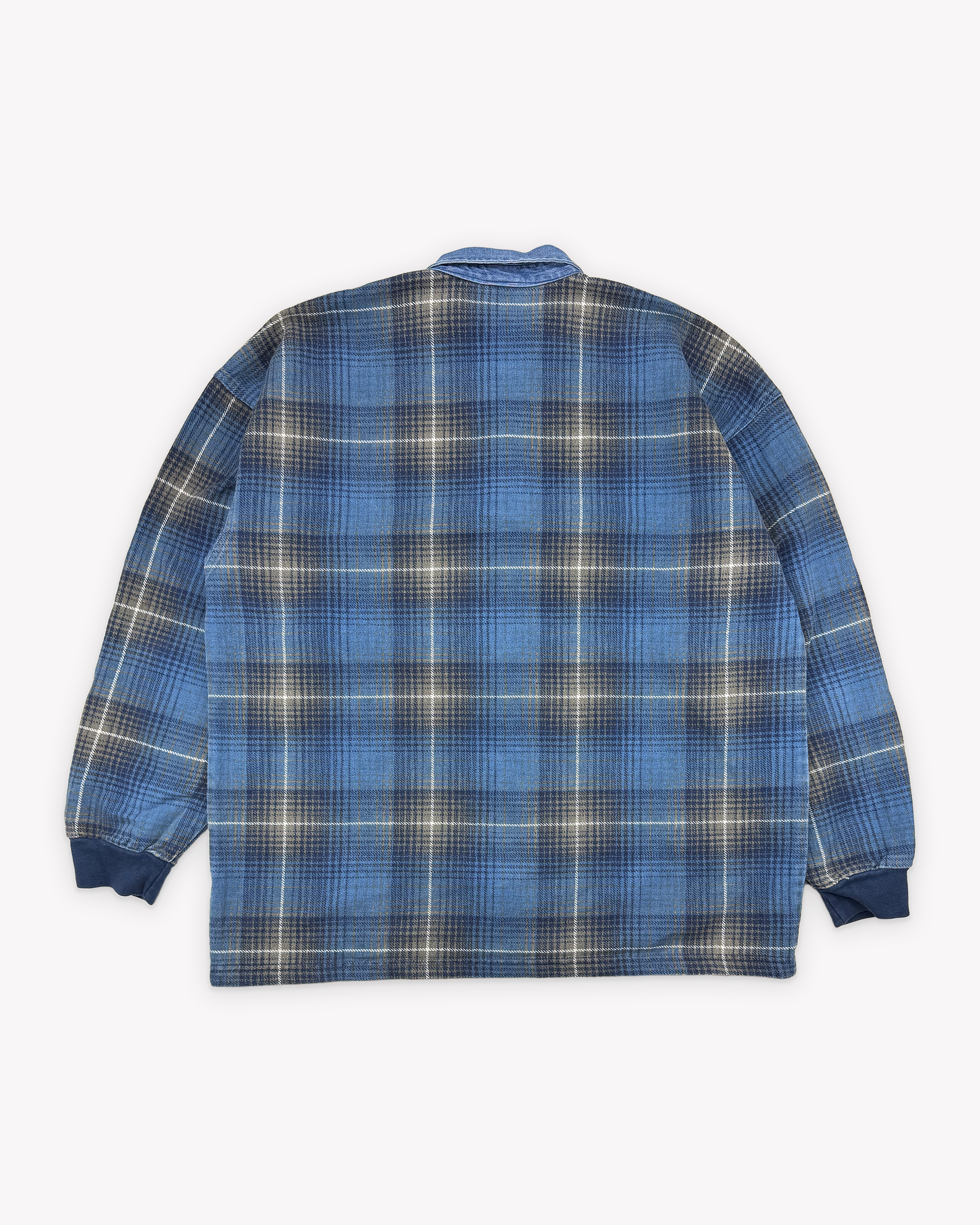 90s Structure Shadow Plaid Rugby: Blue XL