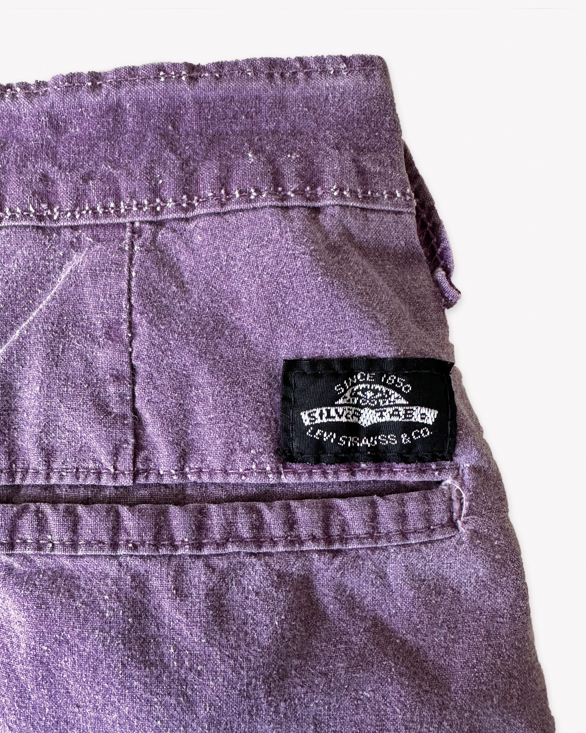 Sick pair of USA made Levi's Silver Tab shorts. Double pleats, crazy purple overdye, super soft washed cotton