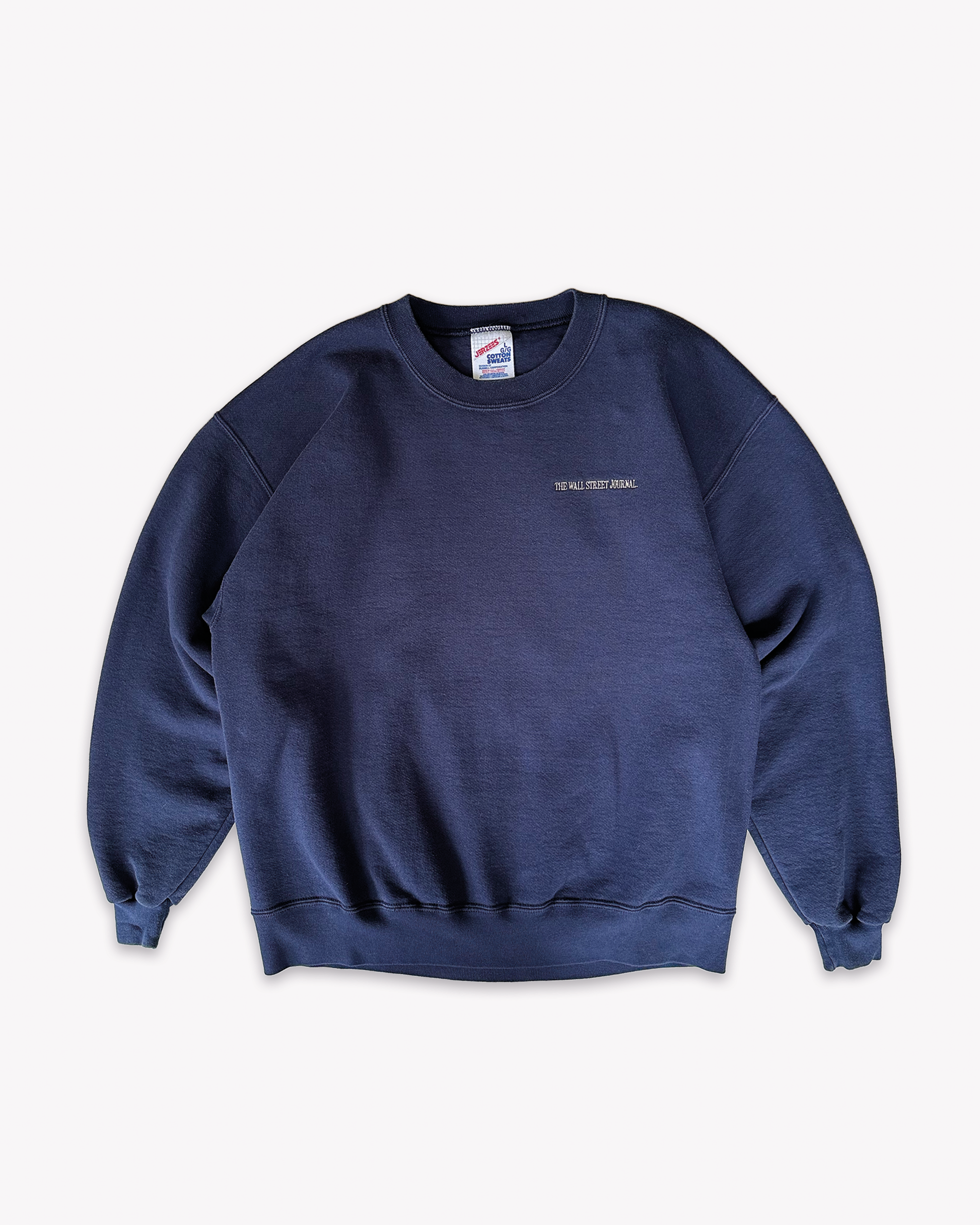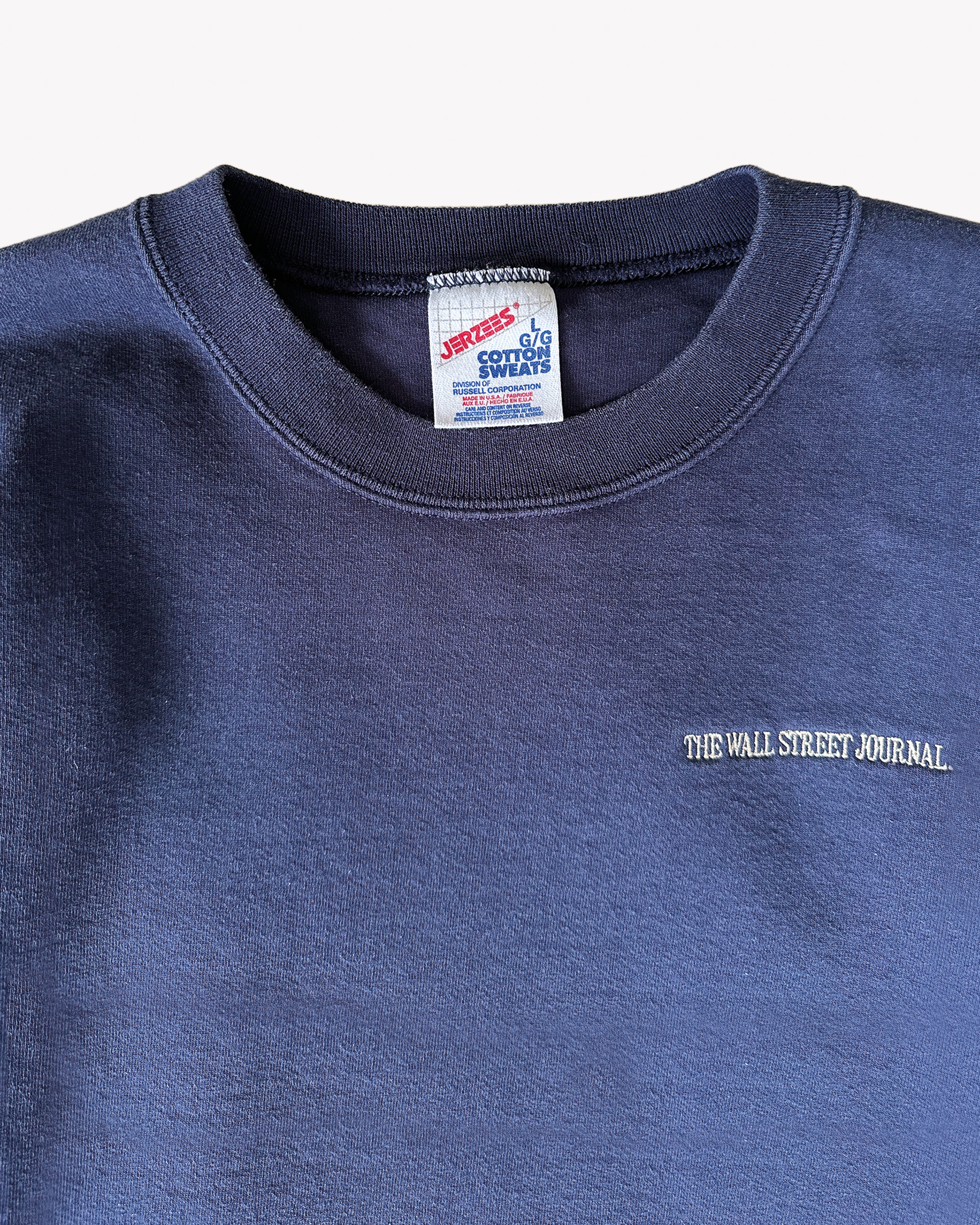 90s staff sweat from The Wall Street Journal. Made in USA by JERZEEZ. Perfectly washed and faded. Front chest embroidery from the iconic New York publication